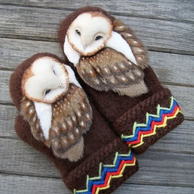 - – Name: Hand Knitted Nordic Mittens with Owls