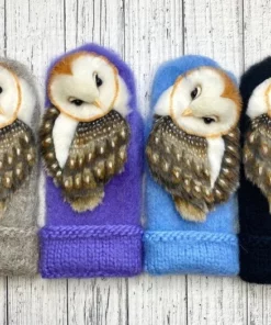 - – Package: 1 Pair x Hand Knitted Nordic Mittens with Owls