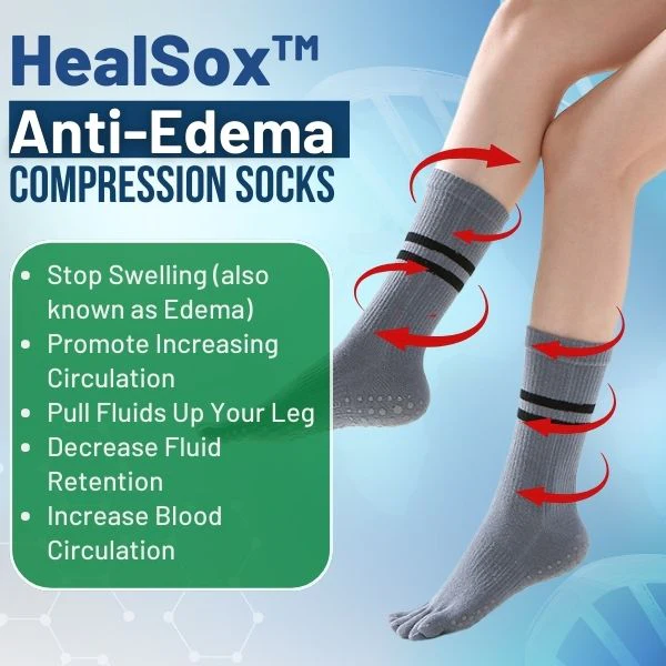 - HealSox™ directly pushes inward to stop swelling (also known as edema). Compression also helps with increasing circulation, which decreases stagnant blood and decreases swelling.