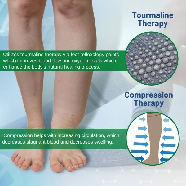 First, HealSox™ works by utilizing tourmaline therapy via foot reflexology points. Applying the concept to lymphedema and edema, greatly improves blood flow and oxygen levels which enhance the body’s natural healing process.
