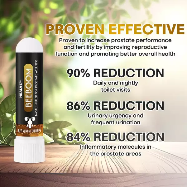 For men dealing with urinary issues related to BPH, such as frequent urination or difficulty emptying the bladder, the Healve™ BeeBoom Nasal Inhaler can provide relief. By reducing inflammation and easing pressure on the urethra, it helps improve urinary flow and reduces discomfort.