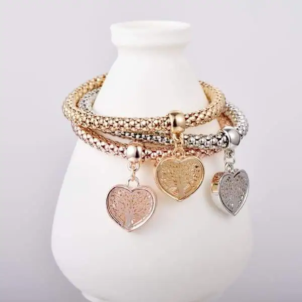 - Package: 3 Pcs x Tree Of Life Heart Edition Crystal Bracelets