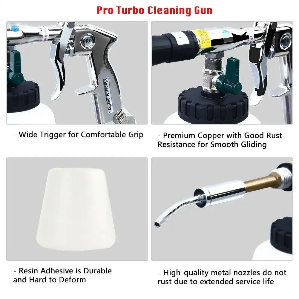 The car cleaning gun comes with a brush for easy cleaning in narrow gaps.