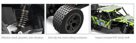 Molooco`s off-road Car with Remote Controller is an amazingly entertaining device that will make some fun time for you! To begin with, finding an inexpensive off-road RC car can be very difficult. Thanks to Joopzy, there is no need to search any further. We have what you are looking for and it performs incredibly when you take it into rough terrain. Moreover, our Car with Remote Controller can compete directly with the performance of professional RC monster trucks. Besides, many RC cars out there are very basic and offer only limited control of your vehicle. With our unique model, you have more versatility and more options for jumps and stunts. Made of high-quality materials with a strong shockproof car body.