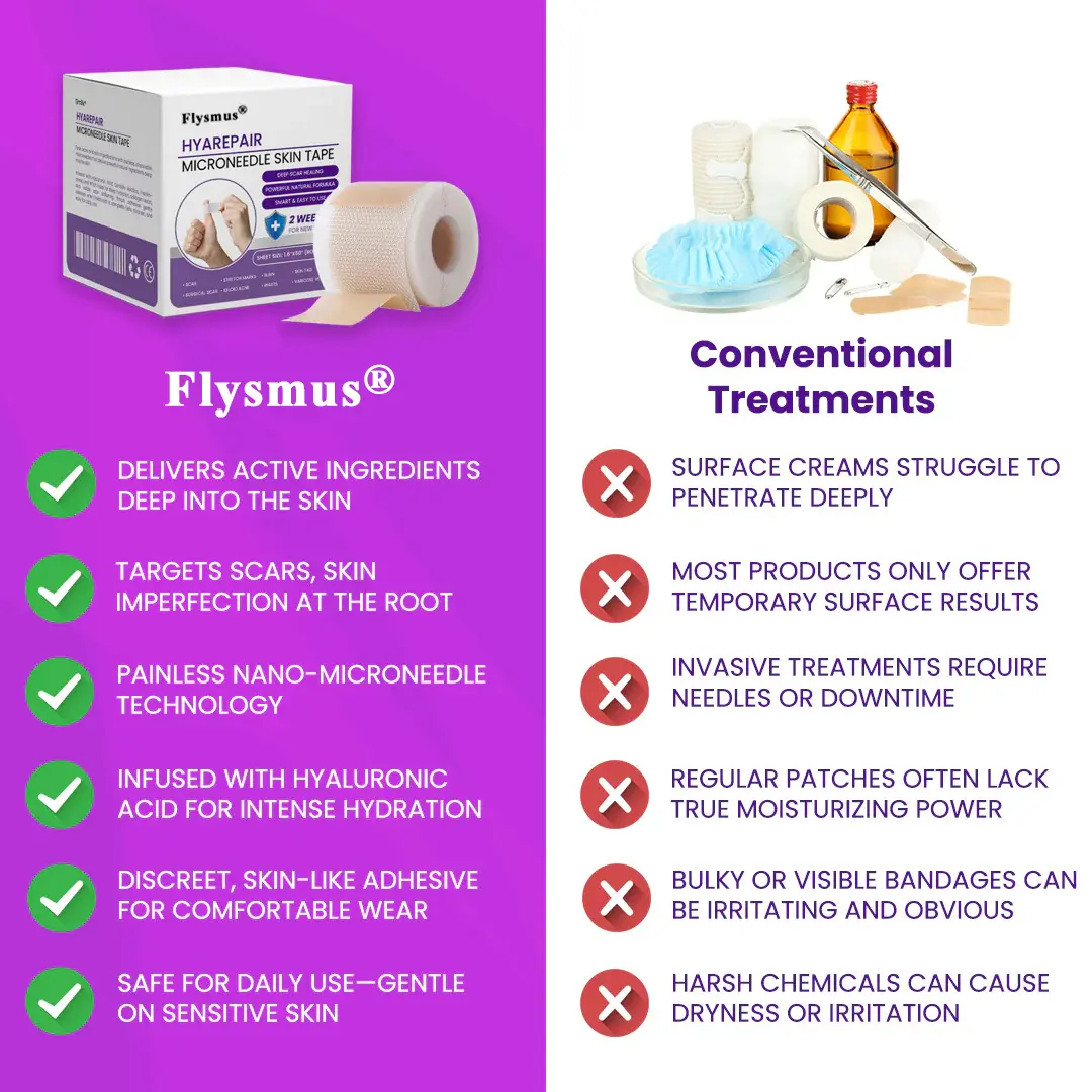 Flysmus® HyaRepair Microneedle Skin Tape vs. Conventional Treatments