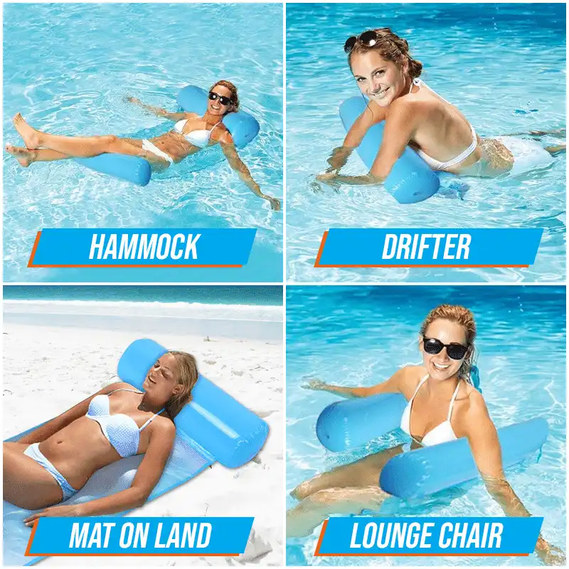 The comfortable and stylish water hammock has a mesh center seat that keeps you partially submerged and cool while the head/neck support provides the ultimate relaxation. Designed to cradle you slightly below the water’s surface keeping you cool and comfortable even on the hottest days.
