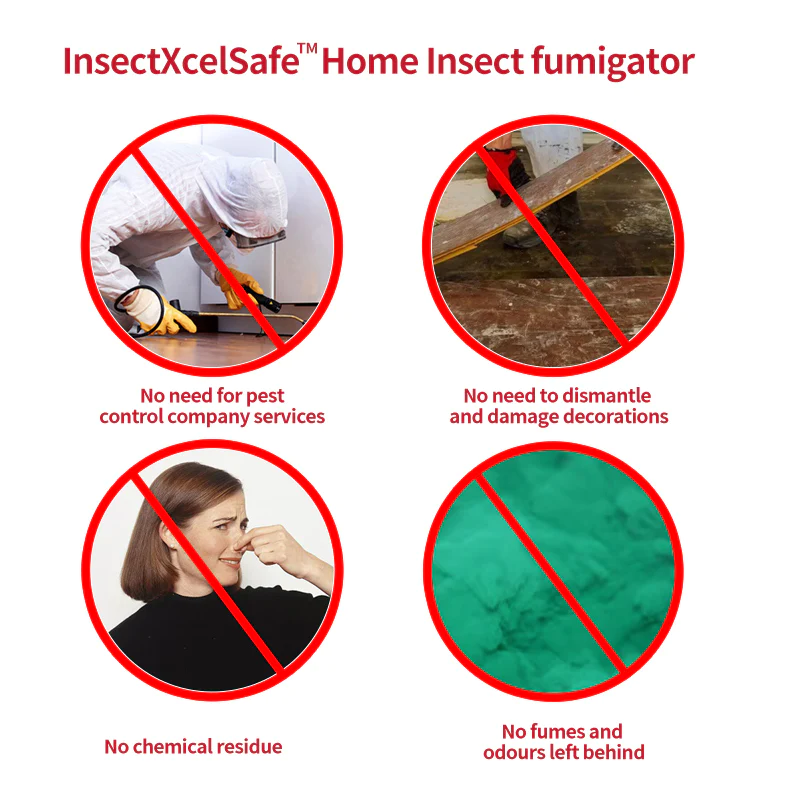 InsectXcel™Safe Home Insect fumigator is an efficient insecticide developed by the International Institute of Pest Control through research on the life cycles and habits of pests. Our product is formulated with non-toxic, harmless ingredients and is specially designed to combat cockroaches, termites, mosquitoes, fleas, and other pests without posing a threat to you and your family. Not only is our product effective, but it is also safe, helping you restore a peaceful home environment.