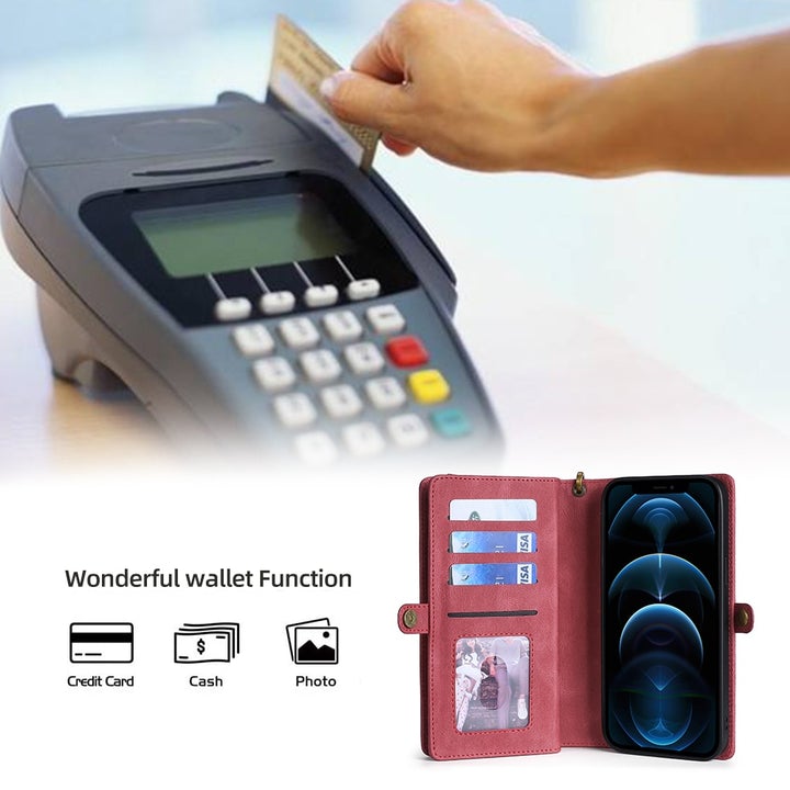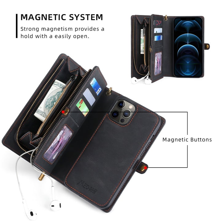 Protect your iPhone in style with a slim and functional shockproof leather wallet case. Meet all your daily travel needs CaseMe is designed to have your cash, coins, keys and cards all in 1 waterproof zipper bag. Magnetic opening and closing makes this wallet a daily necessity. Functions