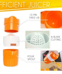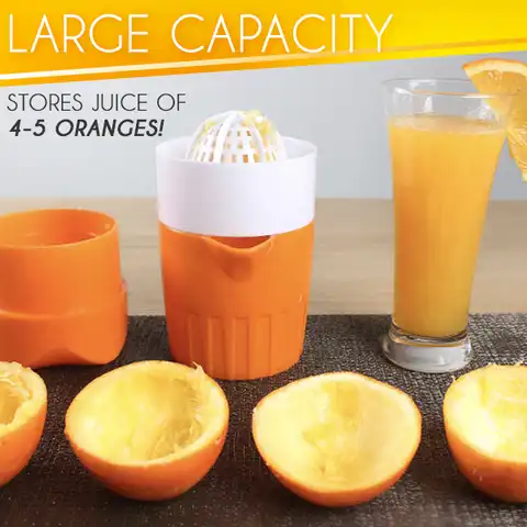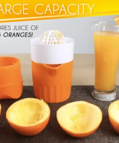 I’m all about compact stacking/packing, this juicer is not only compact but is incredibly sturdy. My friend gave me about 15-18 oranges from her tree, I put this juicer to the test and it passed with flying colors! The top has these ‘claws’ that help keep the orange half in place and the semi-fine plastic mesh cleans easy enough. Overall A+ and happy I bought it!