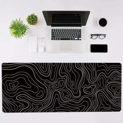1Pcs Gaming Mouse Pad Large Keyboard Pad 31.5 x 11.8in Topographic Mouse Pad Black and White Mouse Pad for Keyboard with Anti-Sl