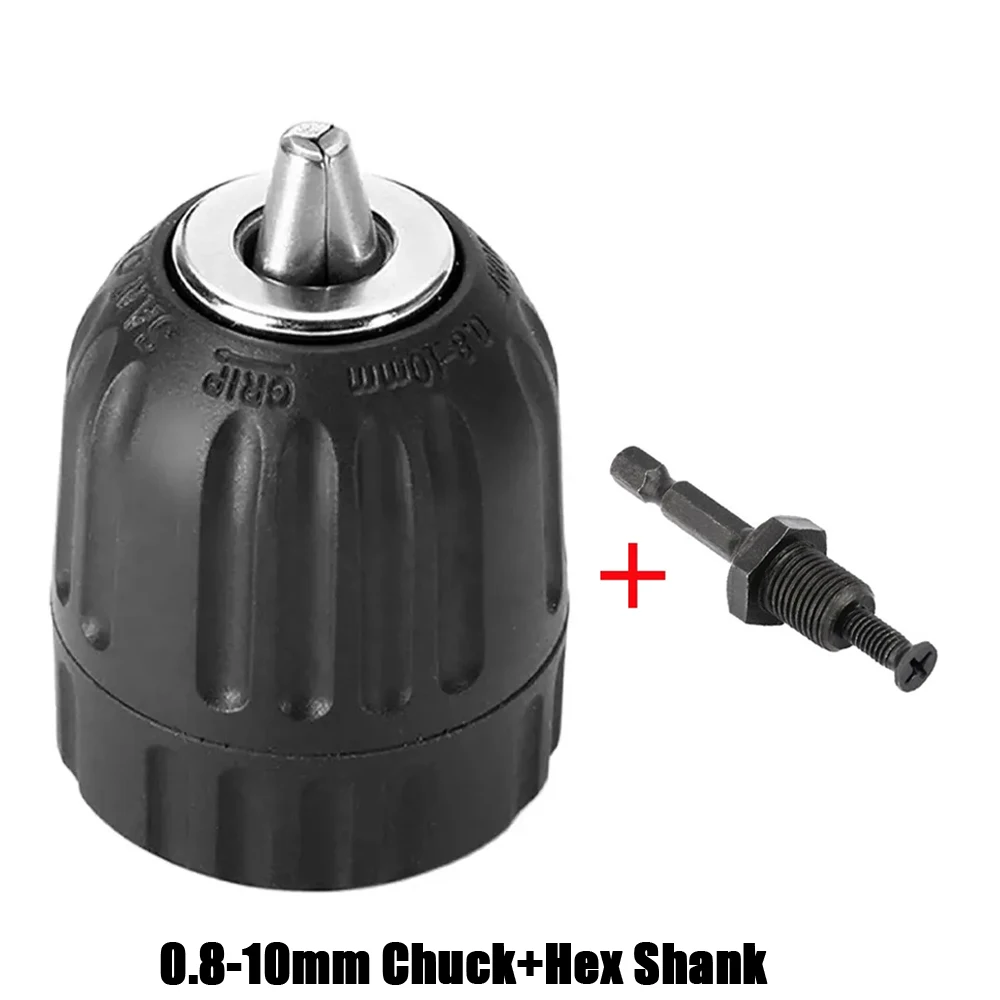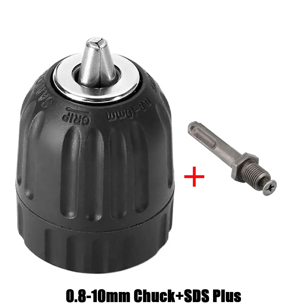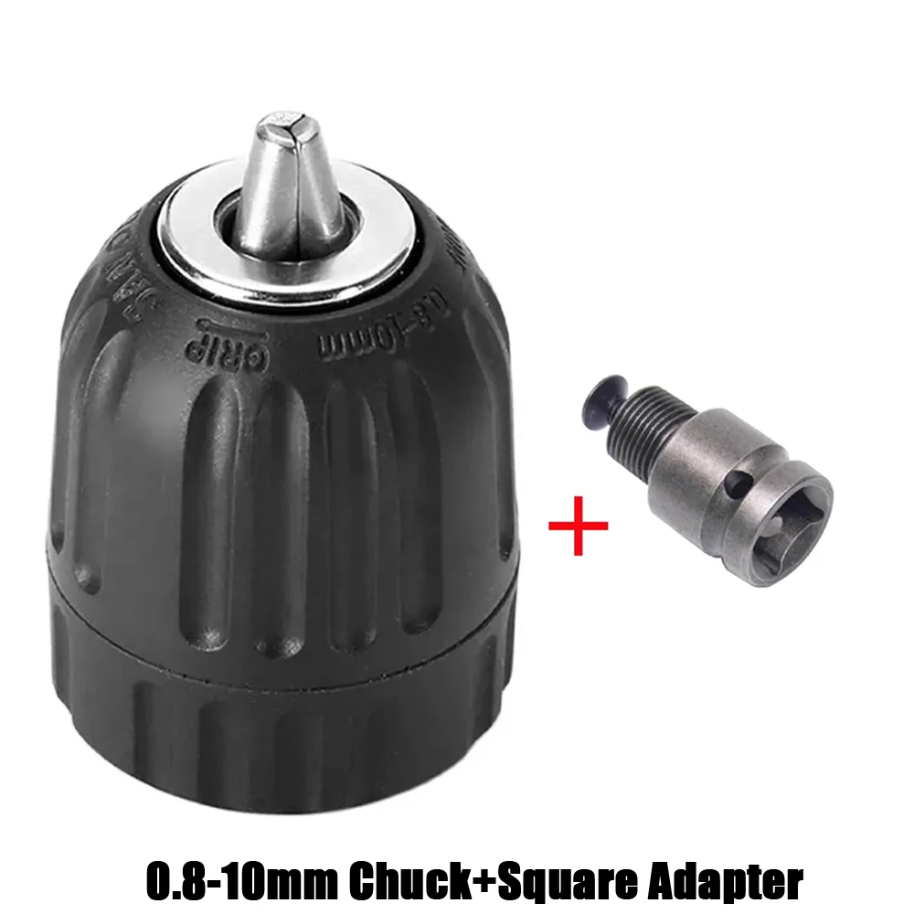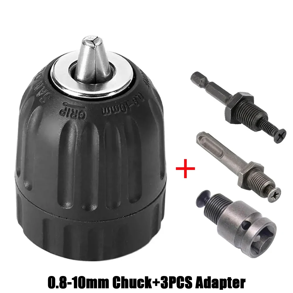 Keyless Drill Chuck 0.8-10mm 3/8-24UNF, Hex Shank/SDS-Plus/Square Quick Grip Adapter, Chuck for Drill Bit Screwdriver Tap&Socket