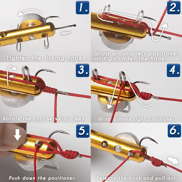 - 2 IN 1 Knot Tying: This tool provides 2 different knotting styles in 1 tool including fishing hook knot and fishing line knotting.
