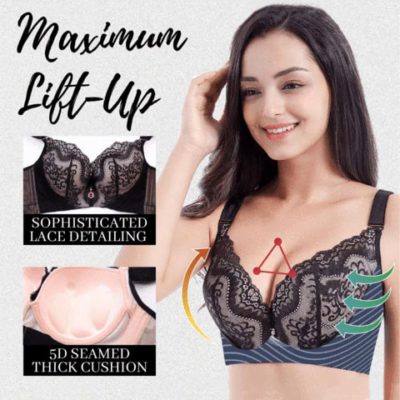 The design of 5D seamed cups, wide under-bust and back band with 4- row hook and eye closure, high side wings with dual-cord, crescent shape panel and strong cushioned shoulder straps ensures maximum support against sagging while smoothing bulges and correcting armpit fats for a flattering silhouette.