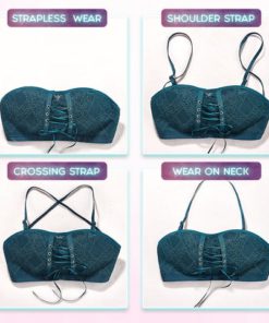 This sexy bandeau creates a busty, plump and charming deep v-shaped breast! The bra’s medium lace design pushes the chest up, emphasizing beauty and curve. You can adjust it by loosening or tightening to fit your shape.