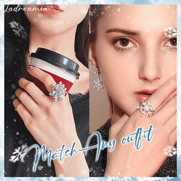 This exquisite ring by Ladreamia is inspired by the beauty of snowflakes and ice crystals. Created with 6-sided crystal rhinestones to form a snowflake ring with a sparkling central stone. Presents frozen, everlasting & delicate love with a subtle yet vivid shine.