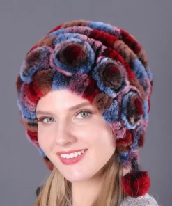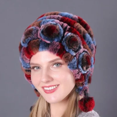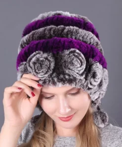 - Name: Lady Warm Flowers Striped Real Rex Rabbit Fur Hats