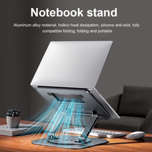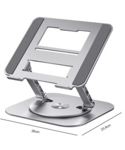 Laptop Stand Aluminum Alloy Swivel Bracket is fully adjustable in height and angle. You can freely raise the laptop screen height up or down for improved ergonomics and to reduce neck discomfort.