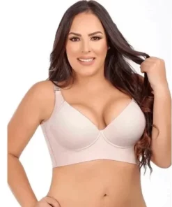 The deep cup bra is great to use for a smoother look under clothing. This bra helps to hide back fat, side bra bulge, and gives a lift while on!