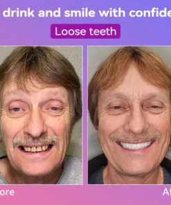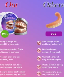 Instant Perfect Smile: Transform your smile instantly with the . Experience the satisfaction of achieving a flawless. customized fit right away. Our innovative denture set eliminates the discomfort of poorly fitting dentures. offering you a snug and natural feel that makes your dentures feel like a true part of your mouth. Say goodbye to sore spots and irritation as Denture Set provides immediate relief. allowing you to enjoy your smile with newfound confidence and comfort. Enjoy a seamless transition to a better-fitting. more comfortable denture experience without delay.
