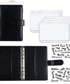 A6 PU Leather Budget Binder Notebook Cash Envelopes System Set With Binder Pockets for Money Budget Saving Bill Organizer