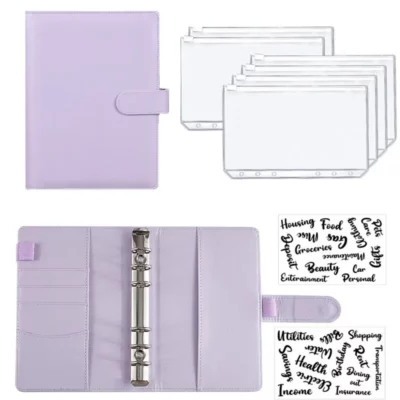 A6 PU Leather Budget Binder Notebook Cash Envelopes System Set With Binder Pockets for Money Budget Saving Bill Organizer