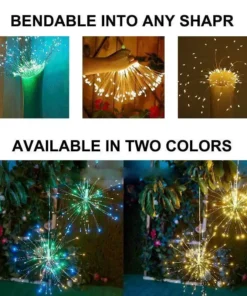Bring an opulent ambiance to your home with these LED Copper Wire Firework Lights! Strong yet flexible, they can be bent into any shape you want and can be easily hung up anywhere with a built-in hook. Make them into the shape of an elegant flower bouquet or dazzling fireworks!