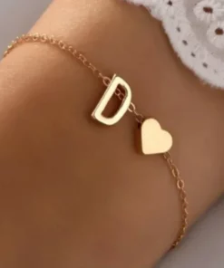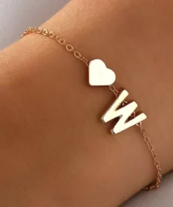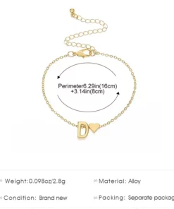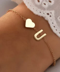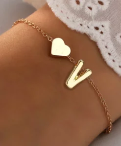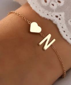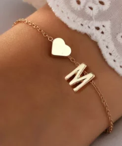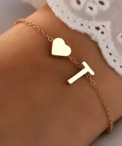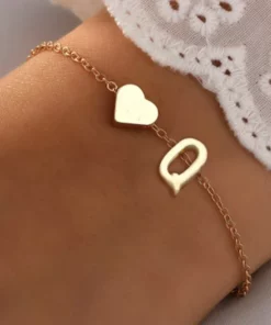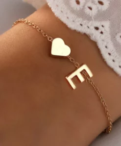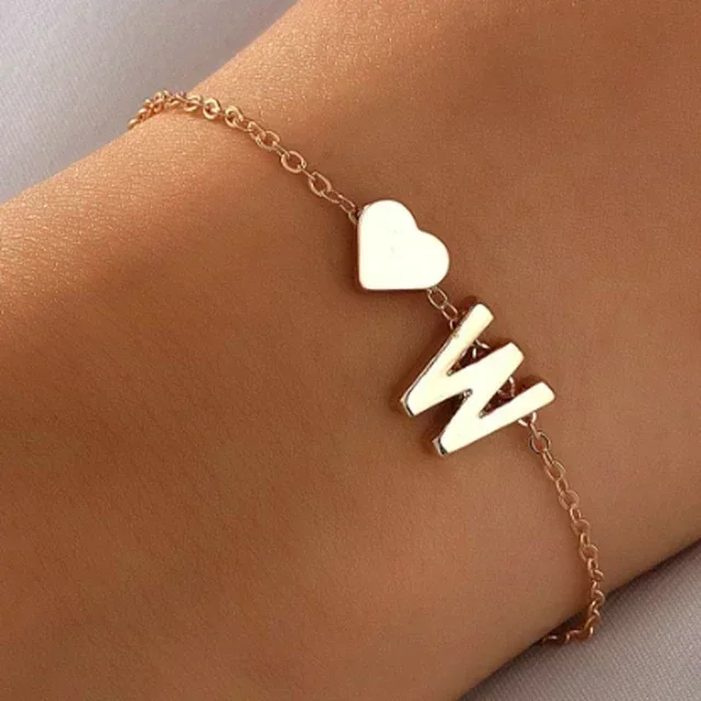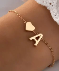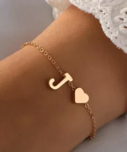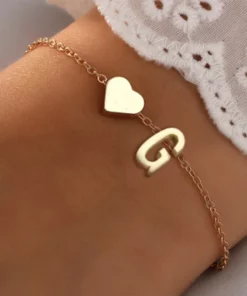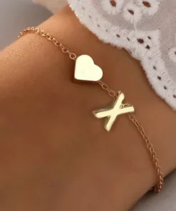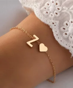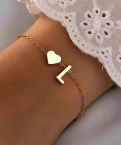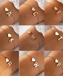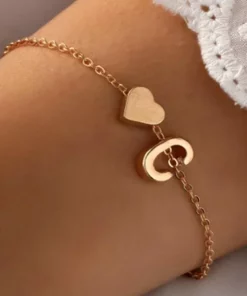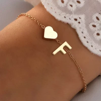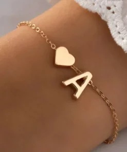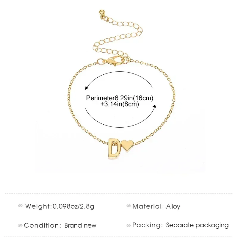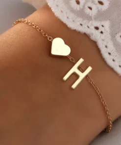 26 English Initial Letter Bracelets for Lovers Women Men DIY Personalized Name Alloy Heart-shaped Bracelets Jewelry Anniversary