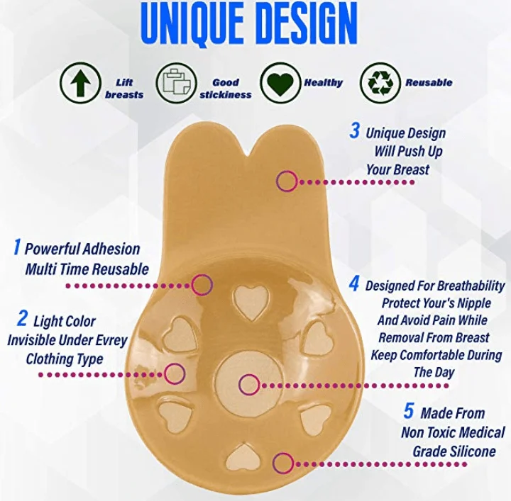 “Great product! the last reusable silicone bra I got would leave glue residue on my breasts after I took it off and it was so hard to take off that glue from my skin. I was kinda traumatized for a while with reusable silicone bras, but I’m so glad I found these! They are cheap, but they are really good quality! I’m between an A cup and a B cup, and I got the B cup. It fits perfectly, doesn’t leave any glue residue whatsoever! And it stays put. I’ve already recommended this product to my friends. You must take into consideration that this bra does not lift the breast, as it doesn’t have any straps to hold onto. So don’t expect it to work as a push up bra unless you use it to pad your bra. “