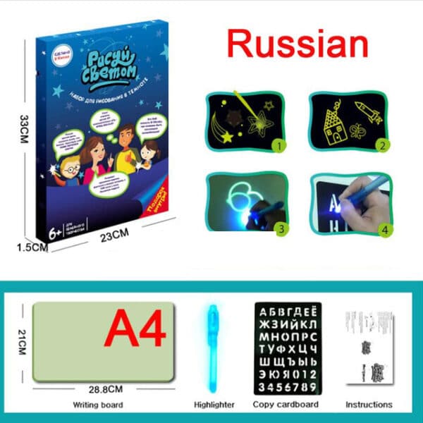 | Type | Russian A5 Board, Russian A4 Board, Russian A3 Board, English A5 Board, English A4 Board, English A3 Board, Light-Fun Pen |