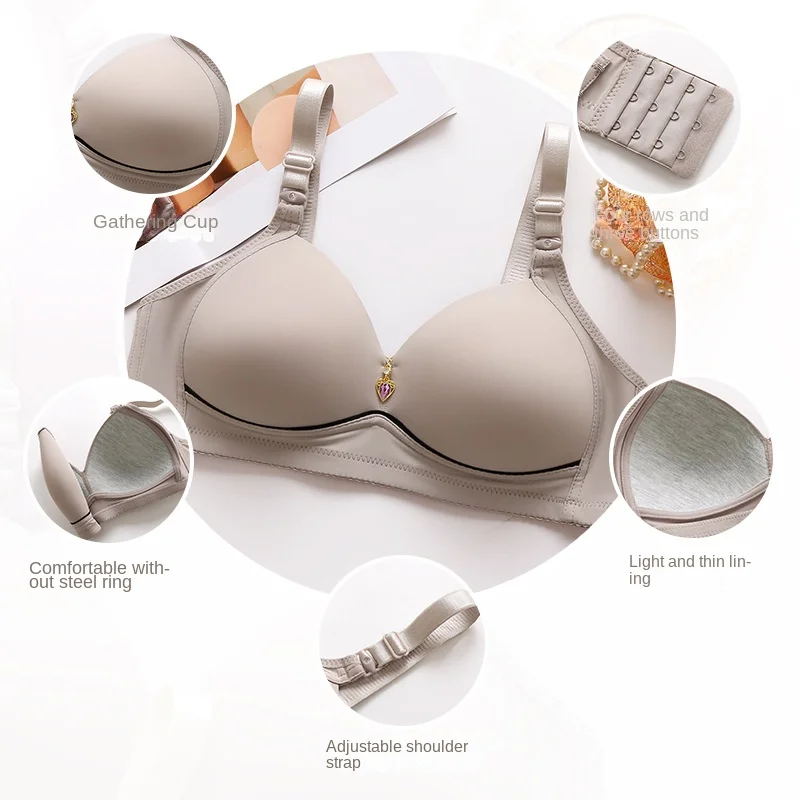 French Solid Color Large Size 3/4 Cup Without Steel Ring Comfortable Breathable Gathered Lingerie Bra Sexy and Versatile