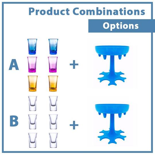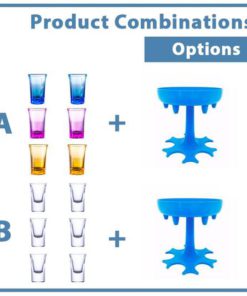 | Sets | JUST dispenser holder – BLUE, dispenser holder – GRAY, dispenser holder – BLUE + 6 CLEAR SHOT GLASSES, dispenser holder – BLUE + 6 OMBRE SHOT GLASSES, dispenser holder – GRAY + 6 CLEAR SHOT GLASSES, dispenser holder – GRAY + 6 OMBRE SHOT GLASSES |