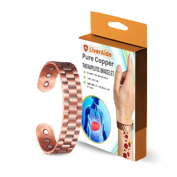 LiverAide™ Pure Copper Therapeutic Bracelet is made from high-quality copper and is designed to be worn on the wrist for maximum effectiveness. The bracelet works by releasing small amounts of copper ions into the body, which can help promote healthy liver function and support overall health.