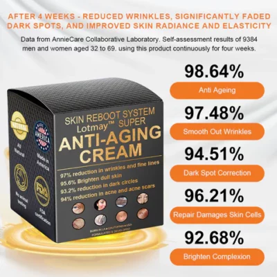 This innovative formula not only combats aging effectively but also deeply nourishes and repairs skin, leaving it tighter, smoother, and more elastic after use. Choose Lotmay™ Super Anti-Aging Cream to rejuvenate your skin and restore its youthful radiance and health.