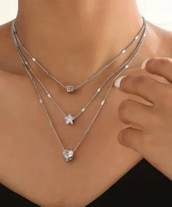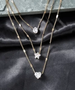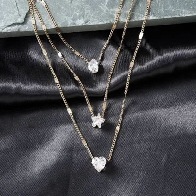 3Pcs/Set Vintage Shiny Rhinestone Love Heart Necklace for Women Simple Multilayer Thin Chain Choker Bridal Neck Jewelry