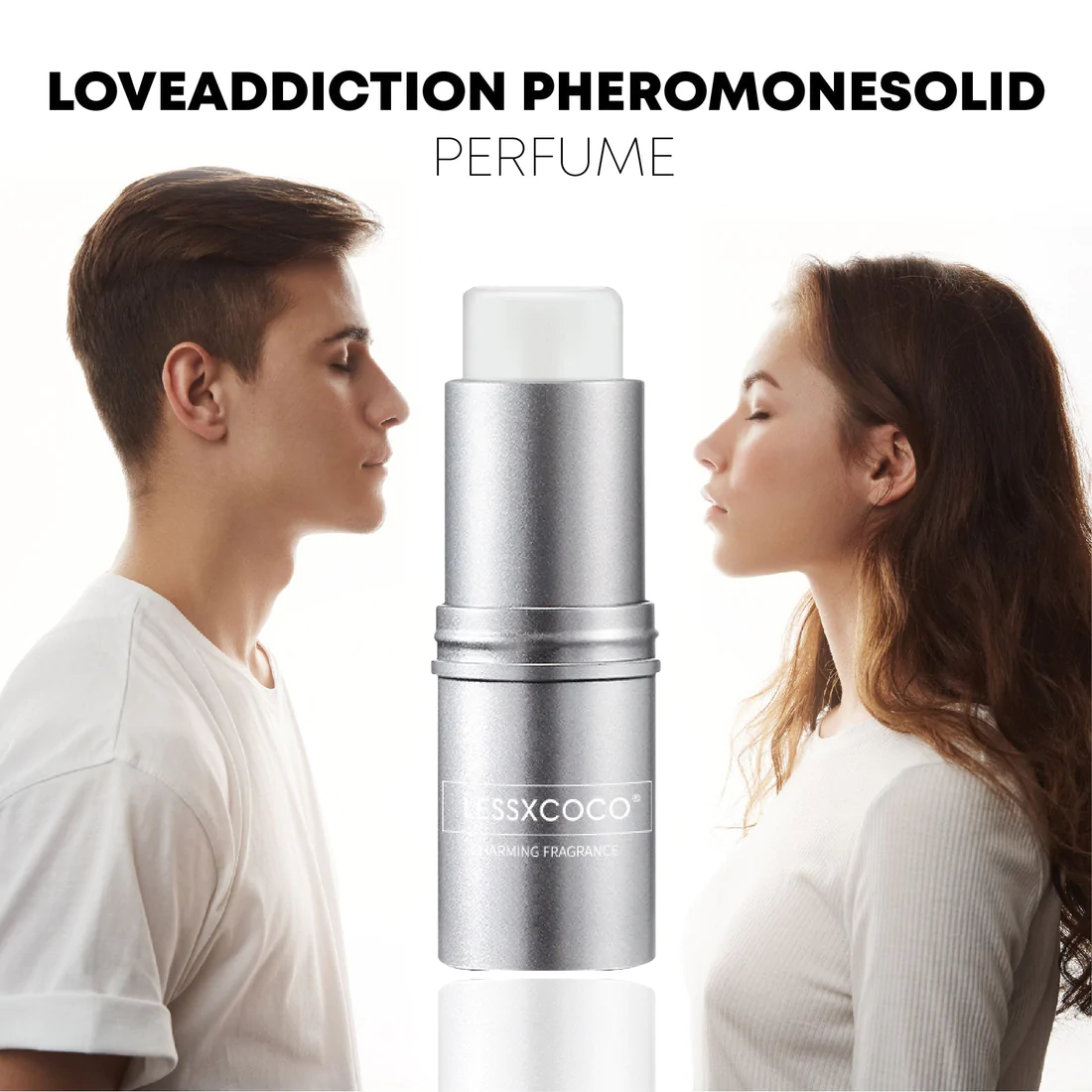 The LoveAddiction PheromoneSolid Perfume formula with the most potent pheromone formulation that affects moods and improves your interpersonal relationships.