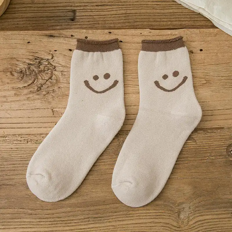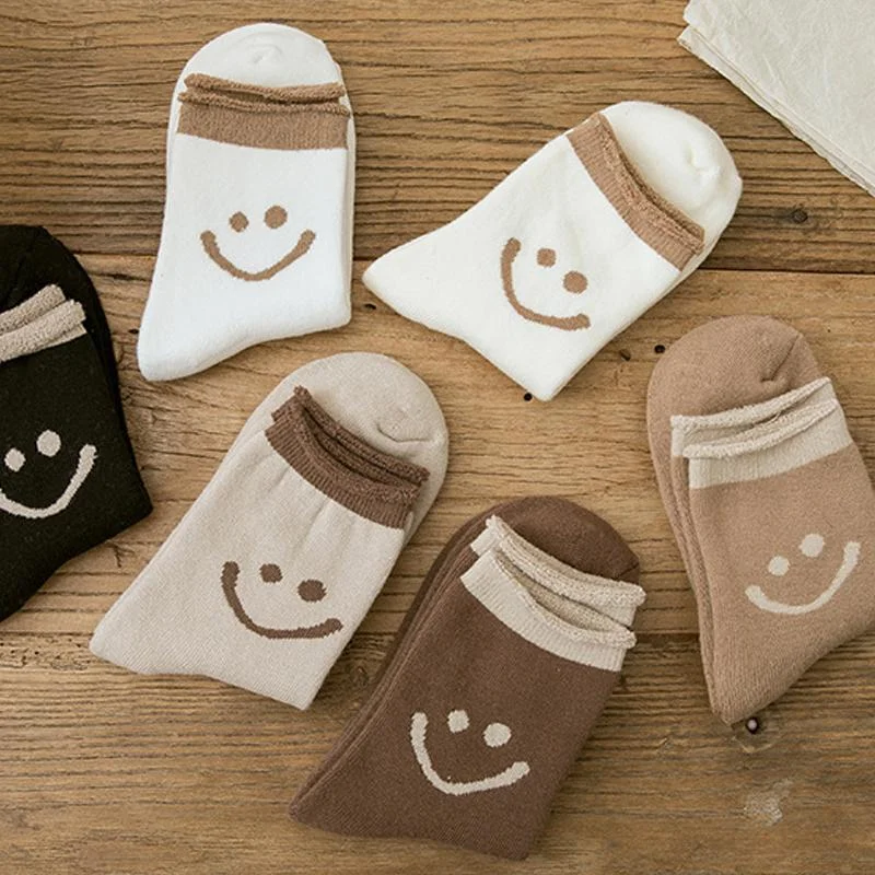 - Package Includes: 5 Pair x Lovely Smile Face Cotton Socks