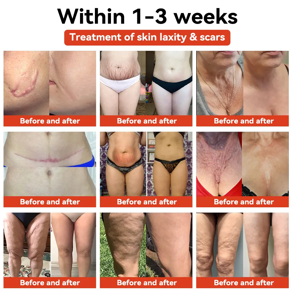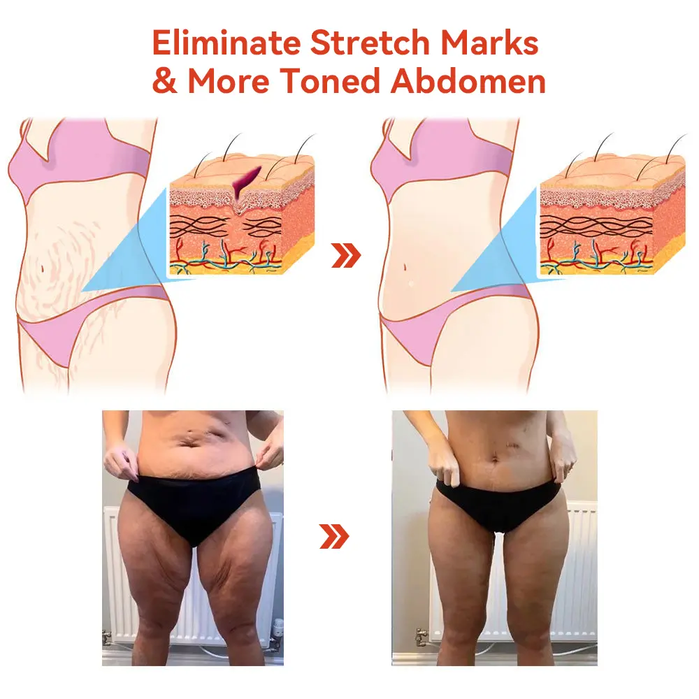 - Tightens loose skin and reduces stretch marks.