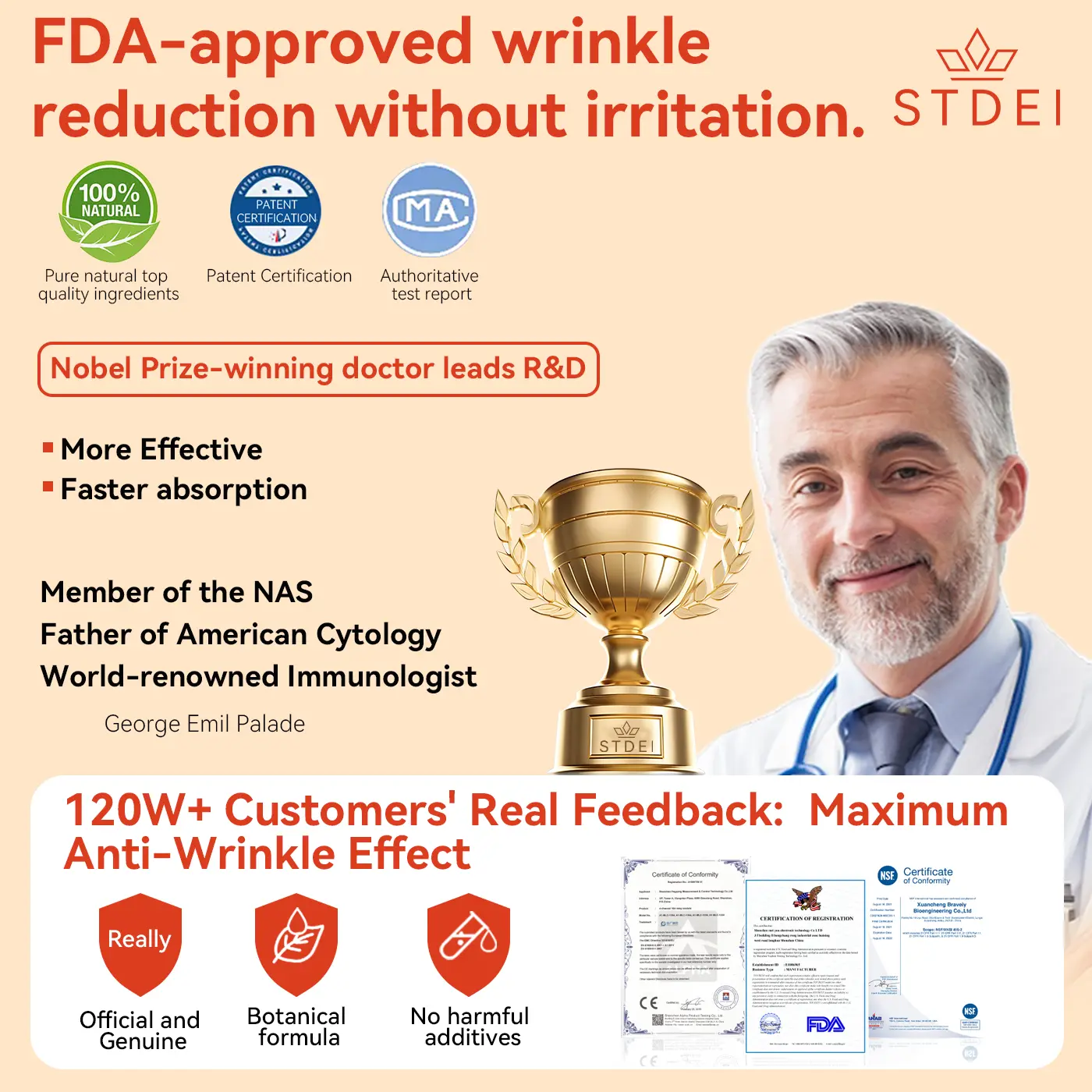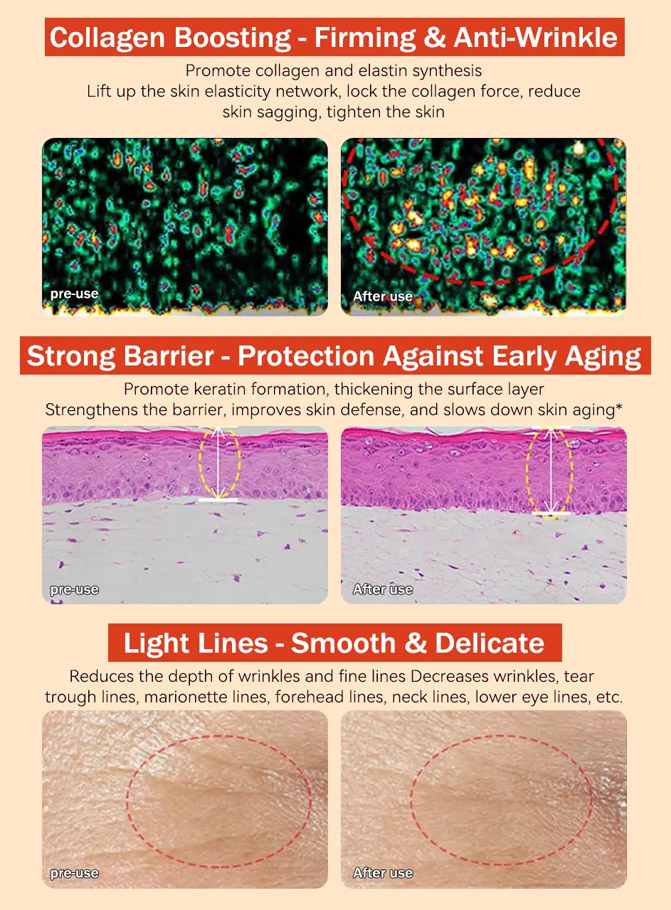 - Hyaluronic Acid: Deeply hydrates, reducing wrinkles and fine lines.