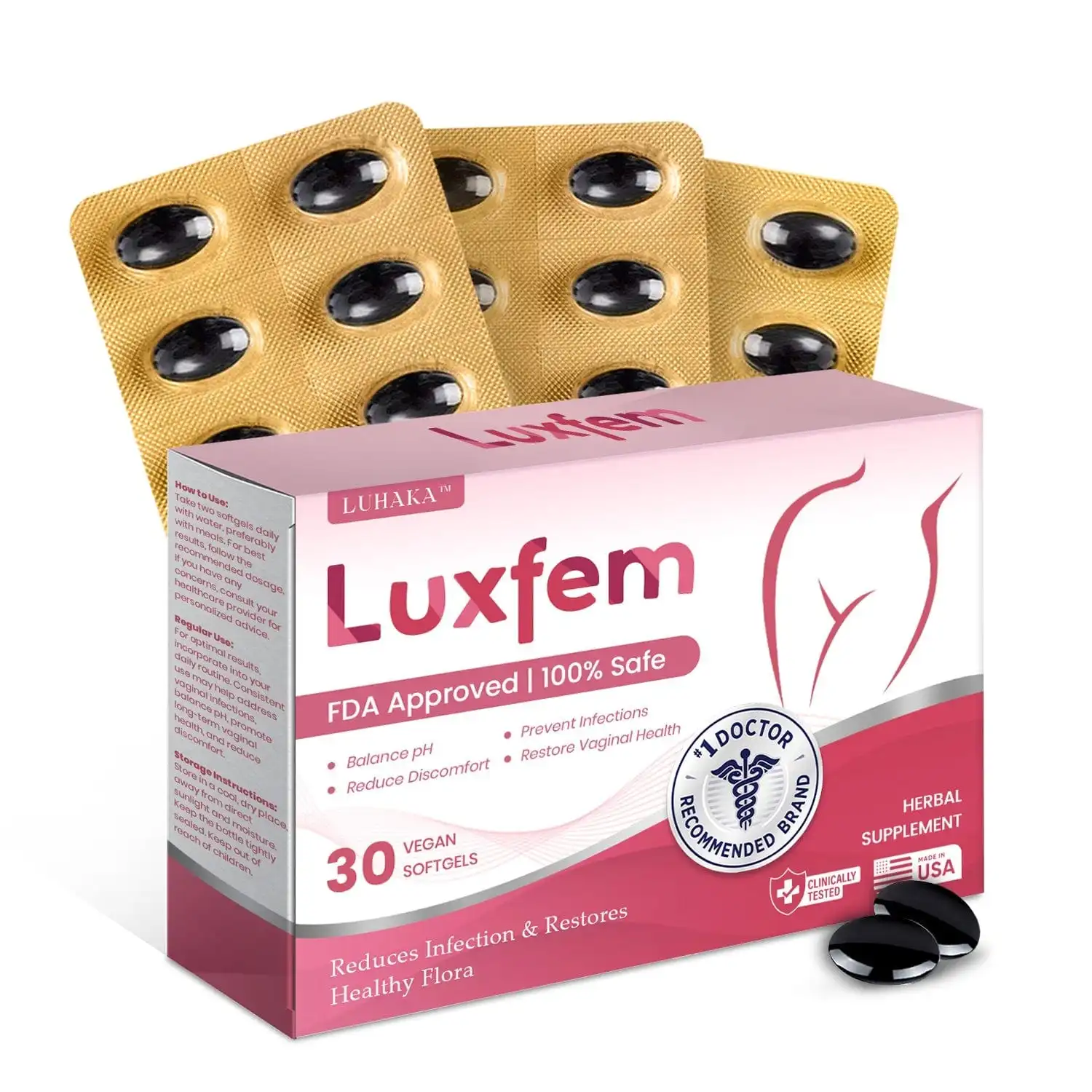 With its advanced formula, Luhaka™ Luxfem offers a comprehensive solution to heal, restore, and protect your intimate health. By balancing pH levels, replenishing healthy bacteria, and easing discomfort, it helps you regain control, confidence, and well-being.