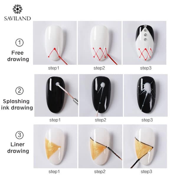 *Attention of Drawing Nail Gel Application:Cure the spider gel under LED/UV light.CURE TIME: Average for LED light 30-60 secs, UV light 2-4mins.