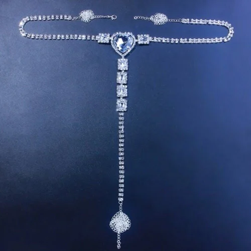 Luxury Big Red Heart Rhinestone Body Jewelry, Sexy Body Chain Lingerie Red Crystal Thong Panties Jewelry for Women Silver Color Rhinestone Belly Waist Chain Body Jewelry Gift has the following product features: