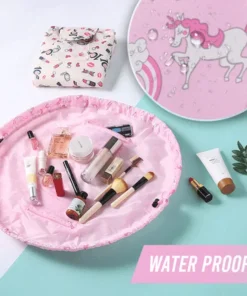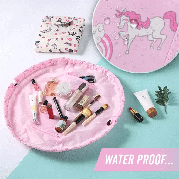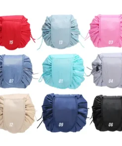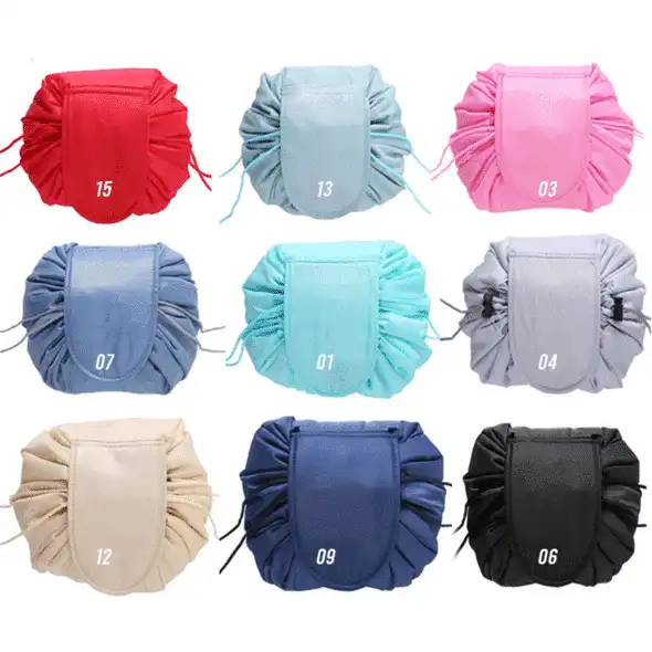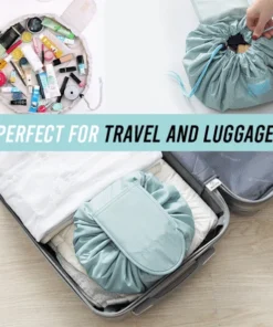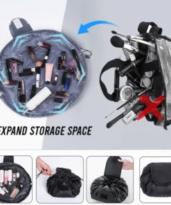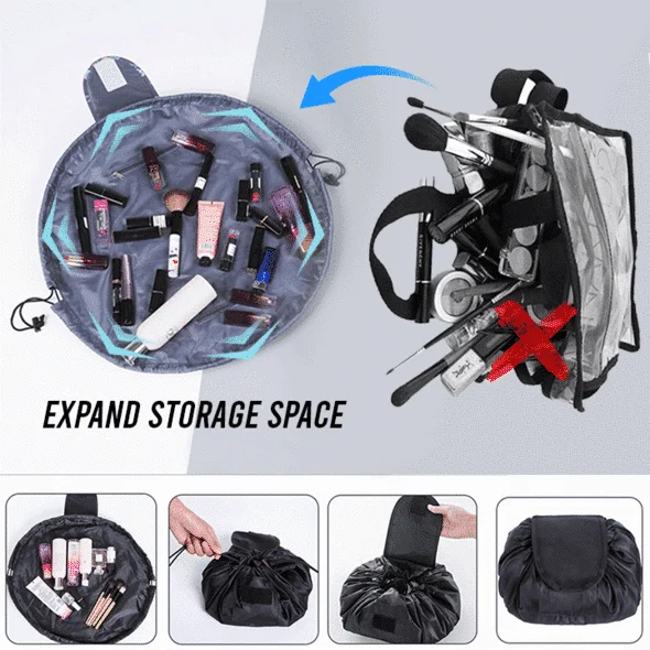 No more messy searching. The High Capacity Drawstring Bag is a cosmetic bag or an organizer that allows you to see all of your cosmetics at once, and clean up in seconds. No more digging and dumping in a traditional black hole make up bag.