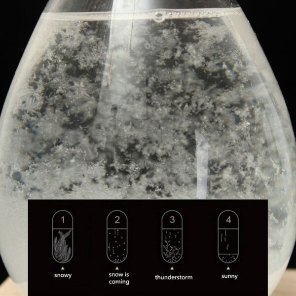 How it works: Inside the glass is a mixture of distilled water and camphor. As the weather changes, the appearance of the liquid also changes. Easy to predict the weather