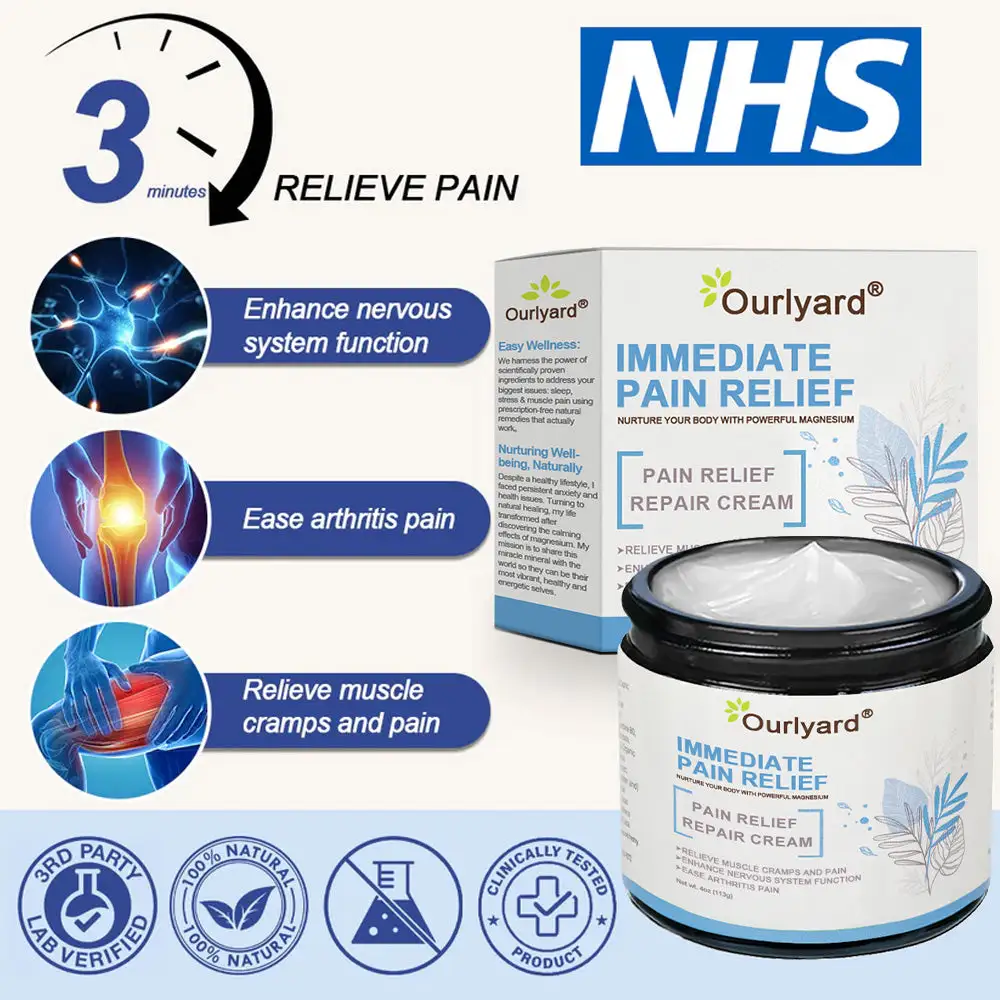 This product has undergone rigorous evaluation and meets the high standards of the UK’s healthcare system. It has also received recognition from NICE, UKCA, and MHRA, ensuring its safety, efficacy, and compliance with UK medical regulations.Designed to effectively relieve neuropathy, joint and muscle discomfort, promote healthy blood circulation, reduce inflammation, and enhance overall mobility, our Ourlyard®: Magnesium Pain Healing Bone Cream meets the strictest medical standards set by NHS, NICE, MHRA, and UKCA. This recognition reflects strong trust in its quality and reliability, ensuring safe and effective results.Choose Ourlyard®: Magnesium Pain Healing Bone Cream with confidence, knowing it meets the trusted standards of NHS, NICE, MHRA, and UKCA, providing professional assurance for your well-being!
