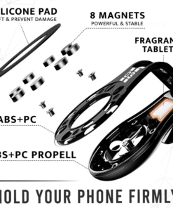 - Magnetic Car Phone Holder provides a strong magnetic grip on smartphones of various sizes and weights. It holds your smartphone firmly with the powerful magnetic force. Its built-in fragrance can let you drive in fresh, sweet and invigorating surroundings.