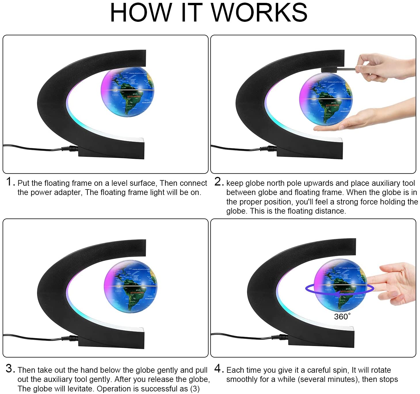Magnetic Levitation Floating Globe has the following features:
