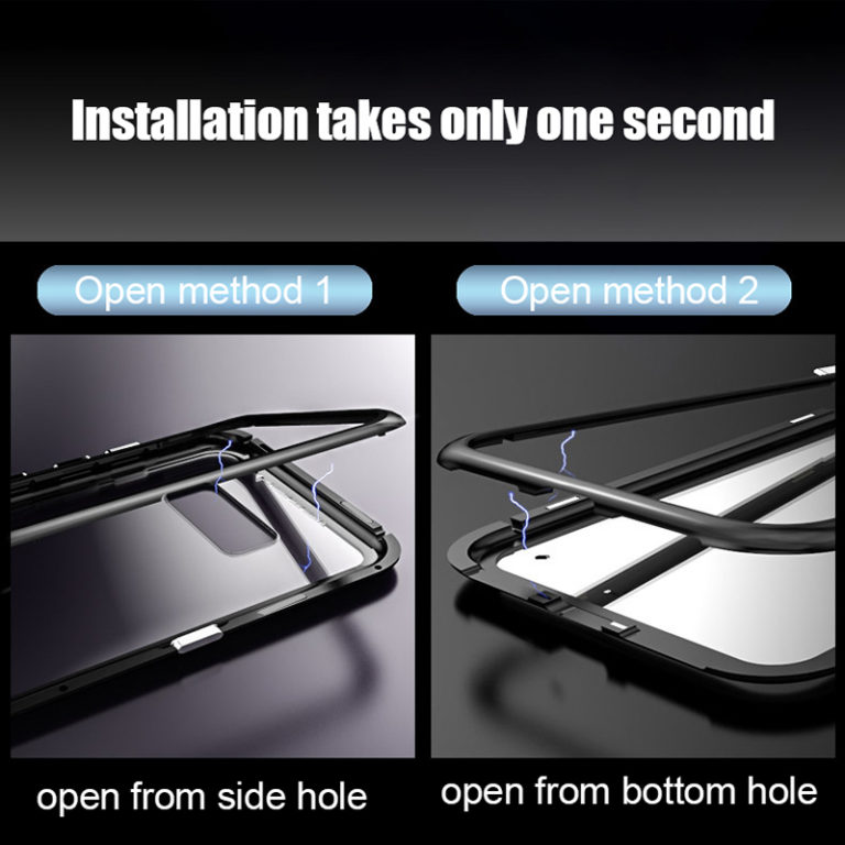 This flawless and magnetic phone case has magnetic adsorption technology. Also, 9H tempered glass back is made to showcase the luxury look of your phone! Precise cutouts make it super seamless when the magnetic metal bezels are closed.