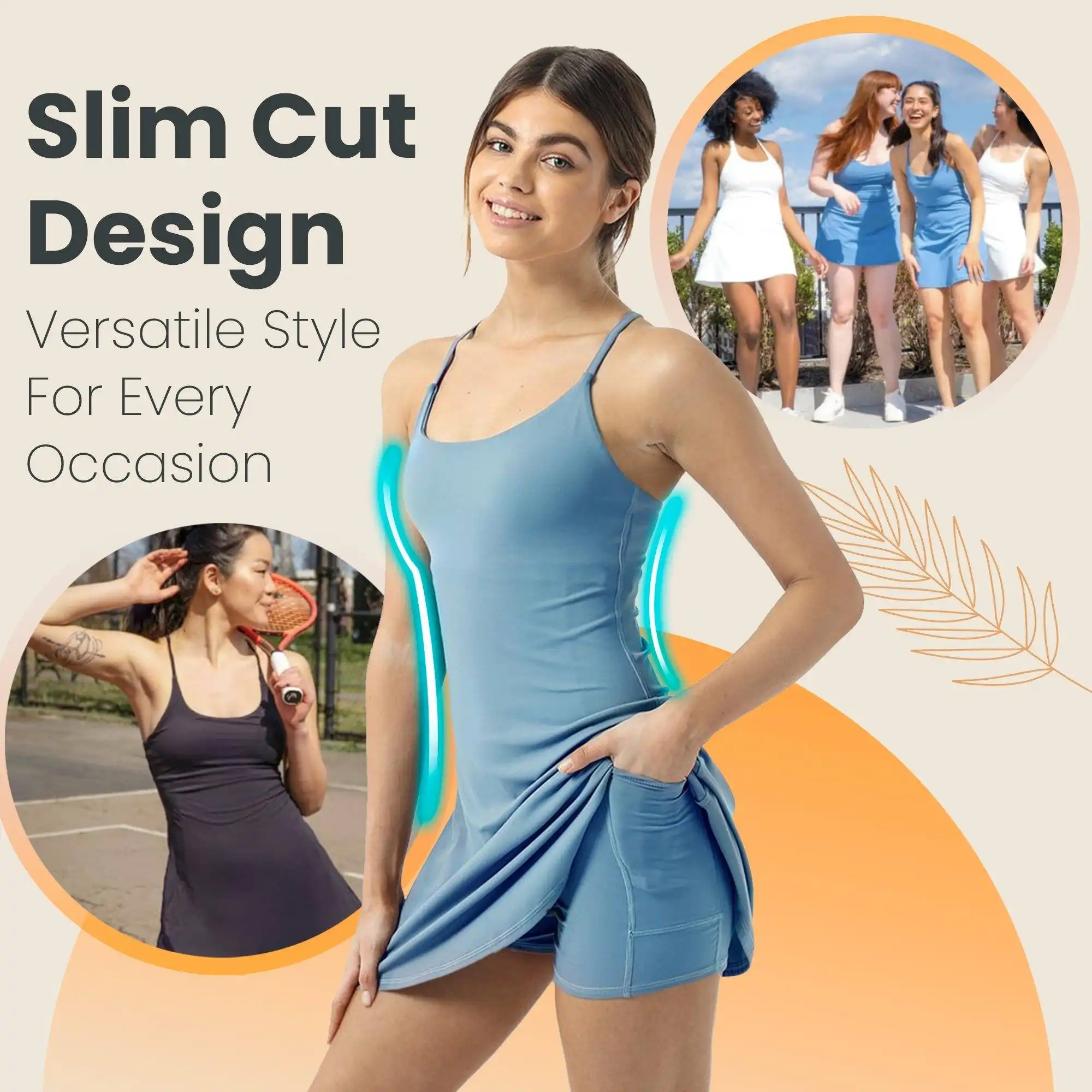 Get sporty and relaxed in this classic versatile skater style dress that comes in a comfortable jumpsuit to be ready for any activity! With its slim fit design and fitted bra, this dress is your effortless style for everyday occasions, whether it’s a sports day or a casual day out!