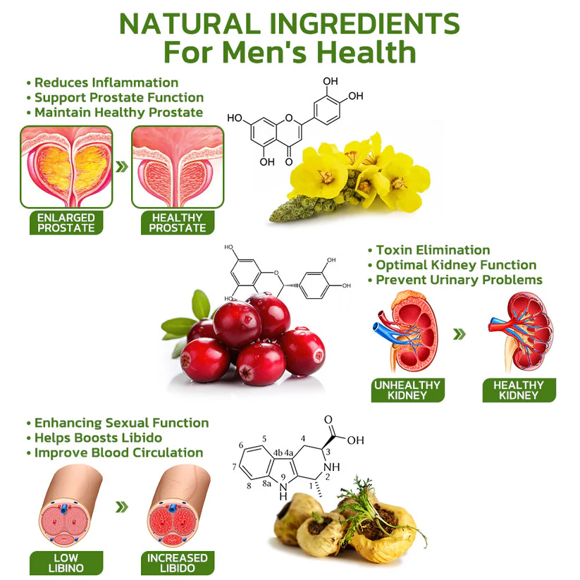 MANSUPPORT™ Organic Male Gland Brew not only promotes healthy kidneys but also significantly enhances male sexual performance. Thanks to its body detoxifying and blood circulation-enhancing properties, the product boosts libido and sperm richness, improving sperm survival rate and fertilization potential. As a result, men experience increased vigor and improved duration of intercourse. This brings significant benefits to men in maintaining and enhancing reproductive capability. MANSUPPORT™ Organic Male Gland Brew formula help block the conversion of the hormone and improve prostate function. This product is designed to restore energy and strength.