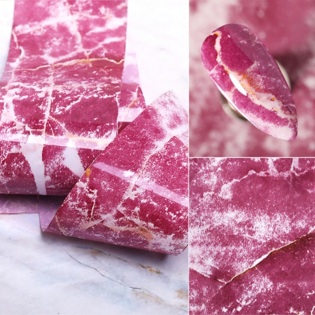 Create an Elegant Nail Art with the Marble Manicure Transfer Film Set, contains a variety of fascinating patterns that will add a touch of elegance to your outfit.